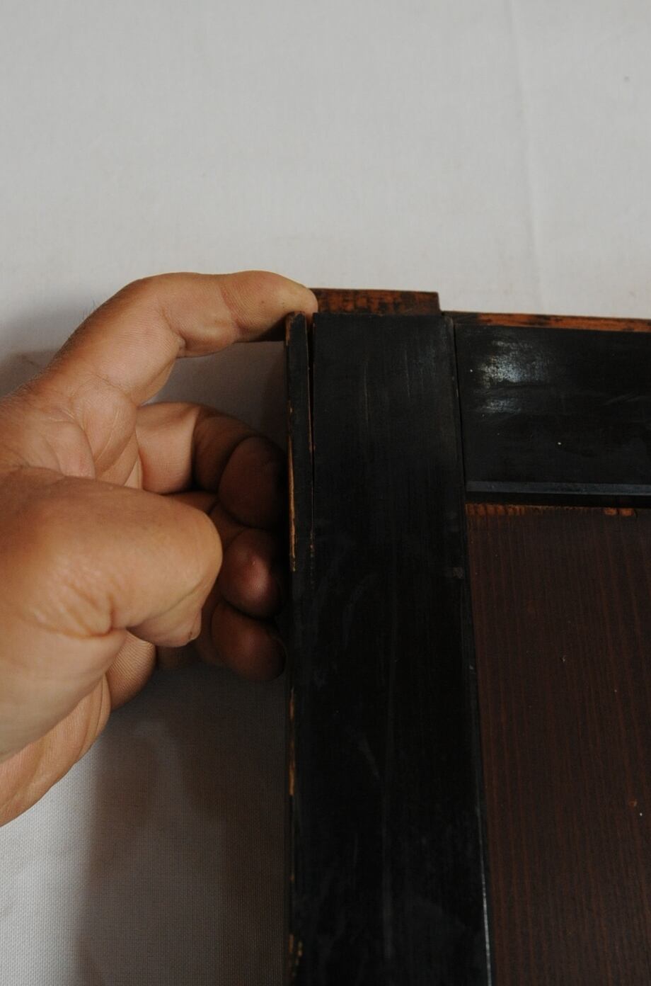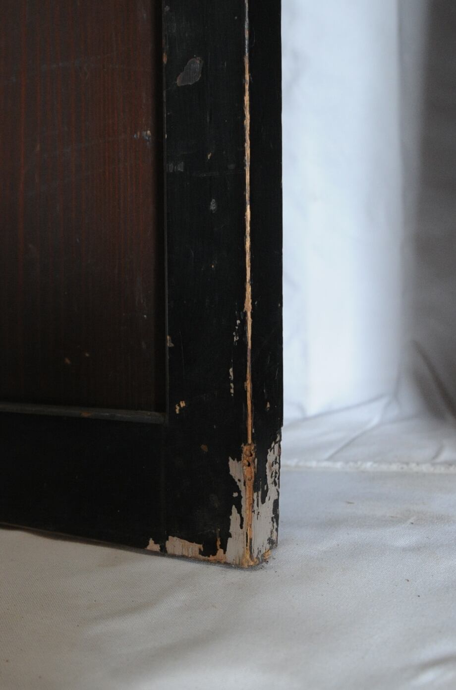 框に擦れ、框と帯の間に隙間有り。